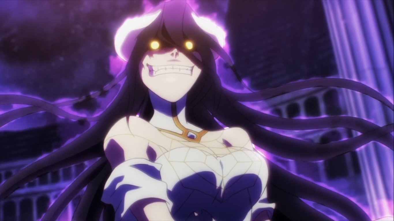 Overlord, Anime: Albedo with a twisted smile and dark aura
